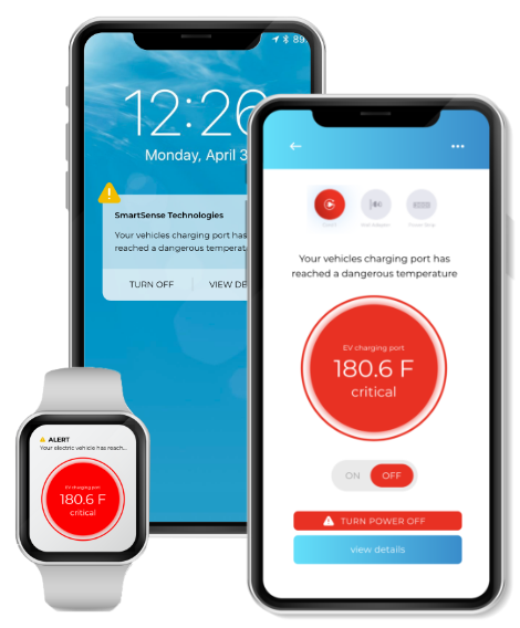 Licensable multi-platform alert technology that notifies users of rising temperatures within the charging port of their electric vehicle.